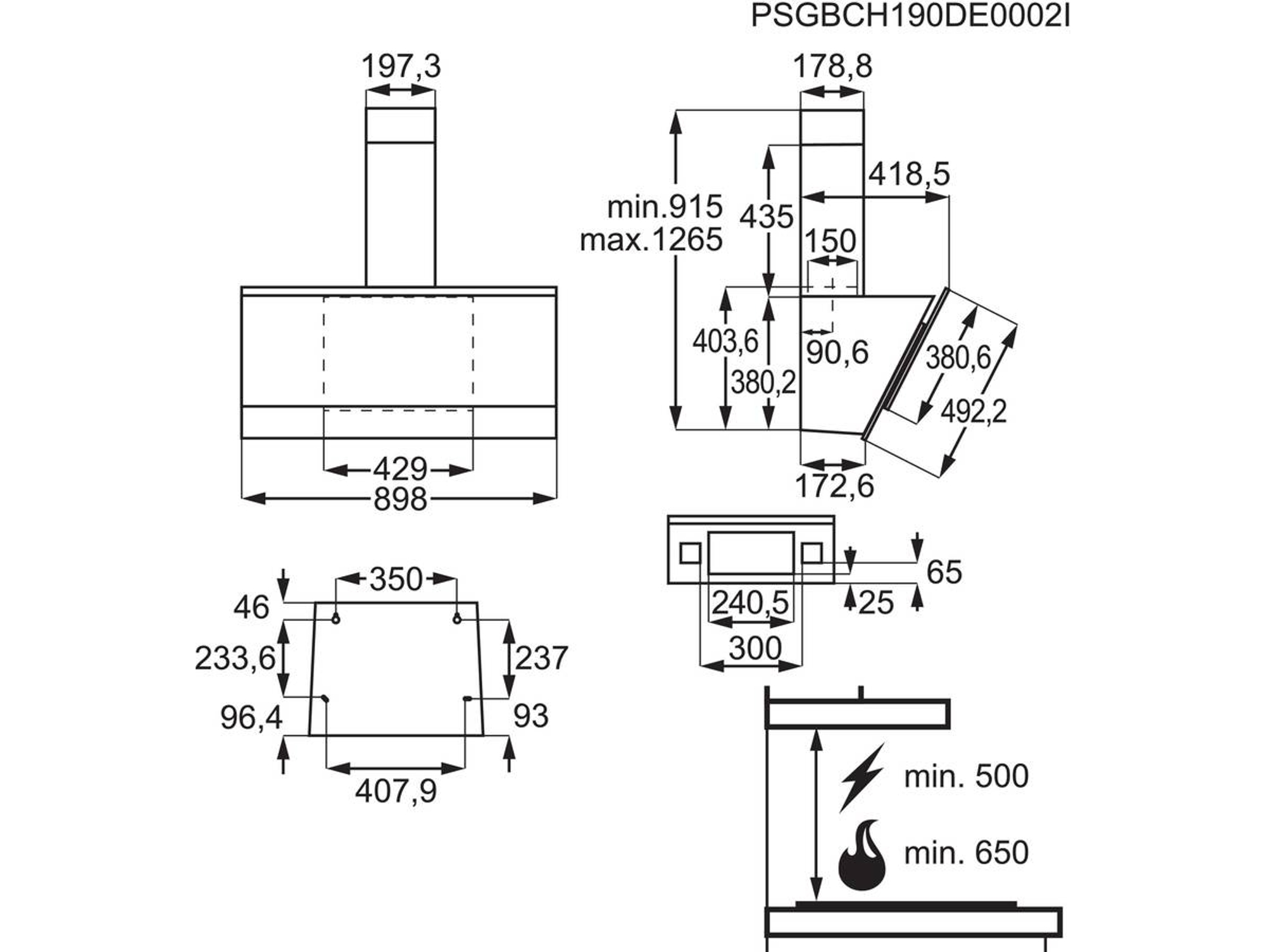 Campana AEG DVE5971HG (400 m3/h – 89.8 cm – Negro)