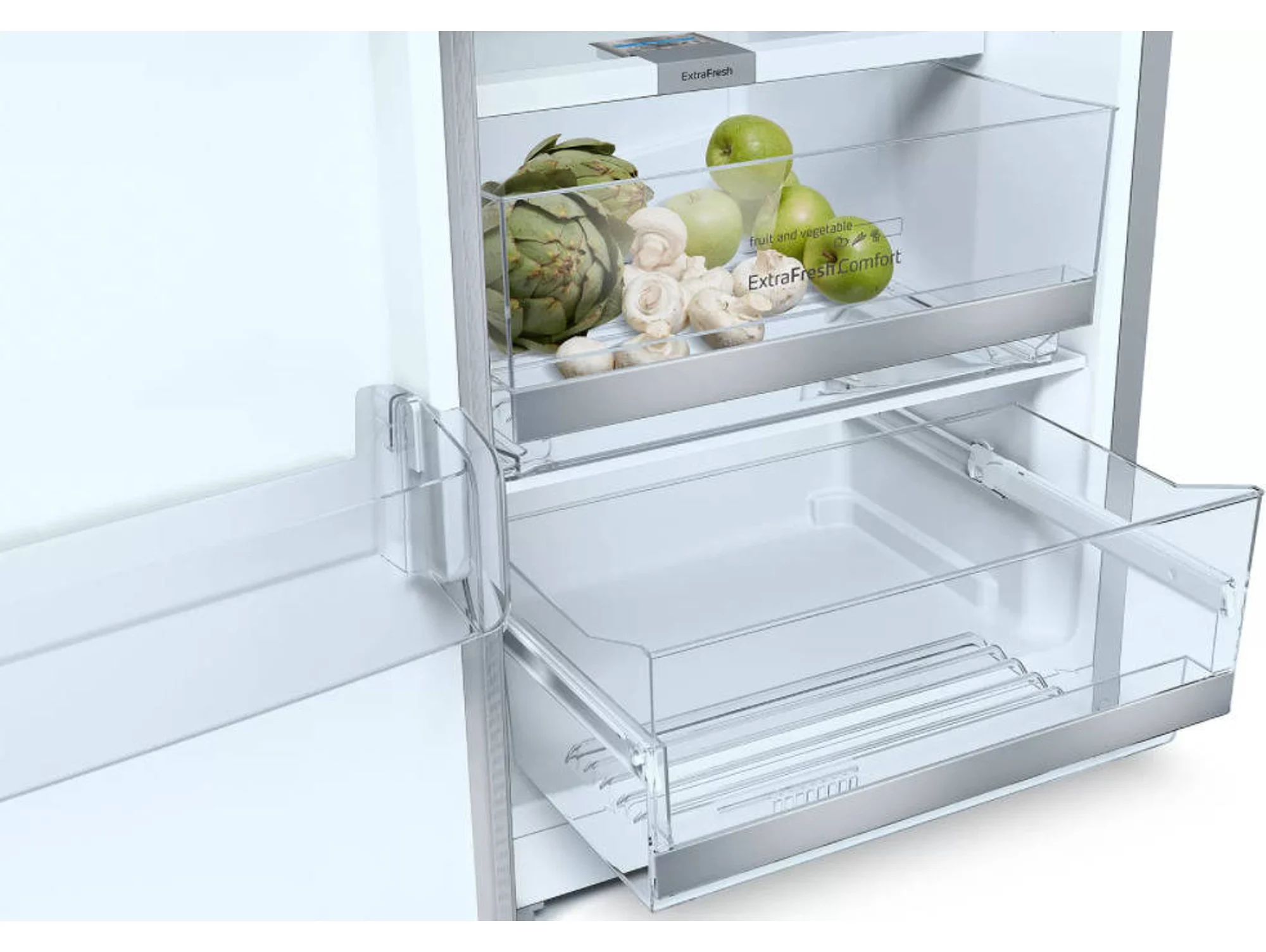 Gracias al cajón ExtraFresh Comfort con control de humedad, los vegetales se mantienen frescos y crujientes por más tiempo. -