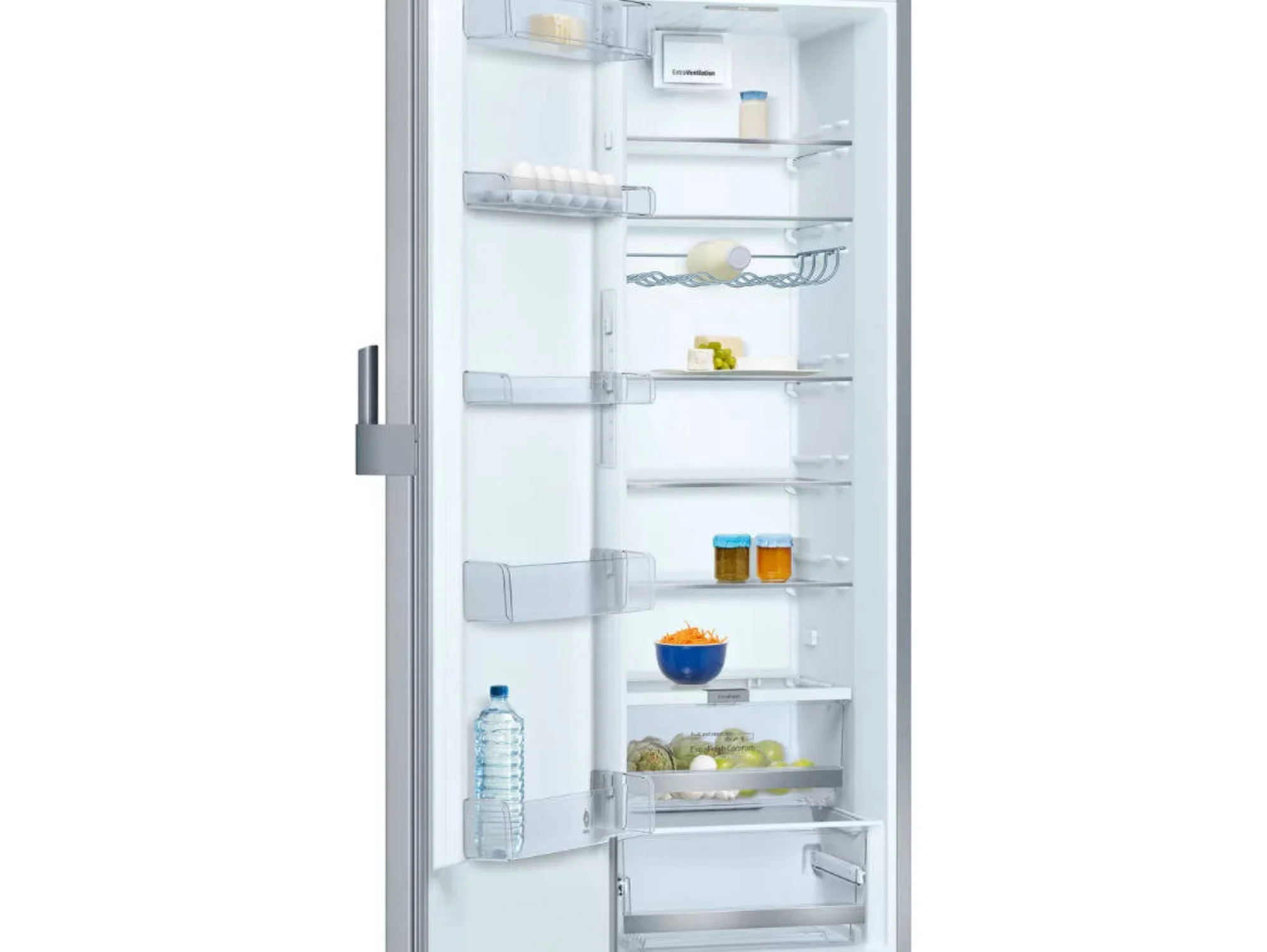 Su diseño de una sola puerta optimiza el espacio interior, mientras que sus estantes ajustables, su cajón ExtraFresh Comfort para frutas y verduras y su pantalla LED garantizan una experiencia de uso práctica, cómoda y adaptada a diferentes necesidades. Además, combina un consumo eléctrico moderado con un funcionamiento silencioso, convirtiéndolo en un aliado fiable para el día a día.