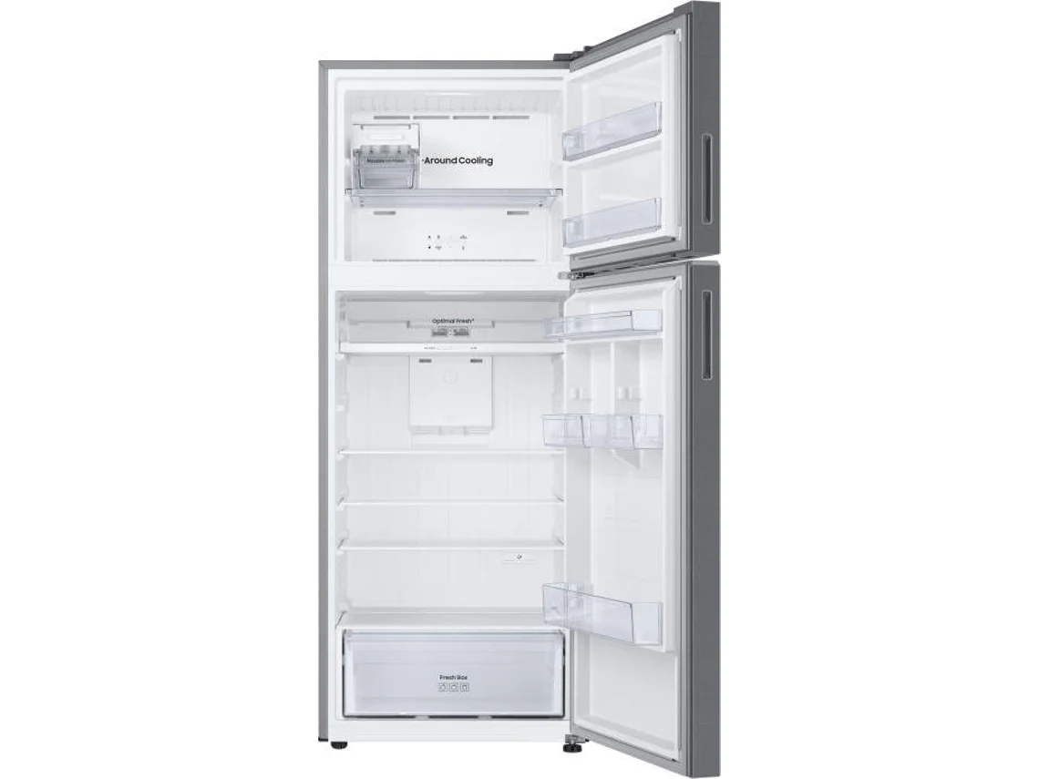 El Samsung RT47CG6626S9ES es un frigorífico de dos puertas que combina un diseño elegante en acero inoxidable con una capacidad total de 465 litros, perfecta para familias numerosas o quienes desean almacenar grandes cantidades de alimentos frescos y congelados.
