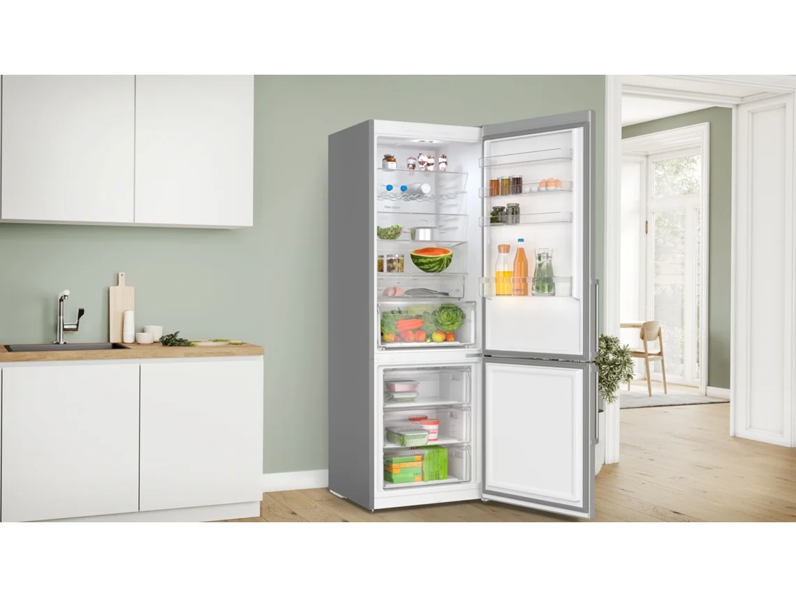 El BOSCH KGN497ICT (No Frost – 203 cm – 440 L – Inox, Tamaño XXL) es la elección perfecta para familias numerosas o cocinas amplias que necesitan un frigorífico con gran capacidad y máxima comodidad.
