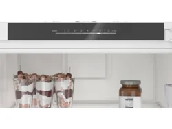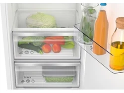 Su sistema de frío ventilado garantiza una temperatura homogénea en todos los rincones, manteniendo la frescura de frutas, verduras y lácteos durante más tiempo. Al ser integrable, se instala detrás de la puerta del mueble de cocina, logrando un aspecto elegante y uniforme.