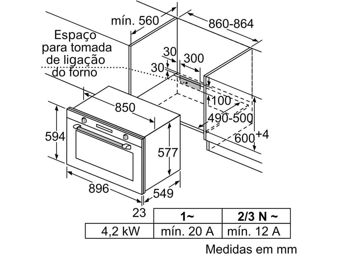 | Espacio de encastre | 600–604 × 860–864 × 560 mm |