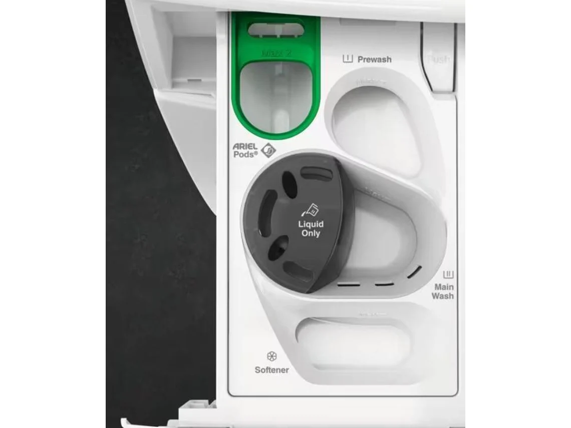 Una de las características más destacadas es el cajón UniversalDose, diseñado específicamente para cápsulas PODS®. Este sistema utiliza chorros de agua personalizados para ablandar, perforar y disolver completamente las cápsulas dentro del cajón, activándolas un 60% más rápido que al colocarlas directamente en el tambor. Esto proporciona mayor potencia y efectividad, incluso en lavados rápidos o ciclos fríos de 1 hora, eliminando manchas difíciles sin dañar las fibras de la ropa.