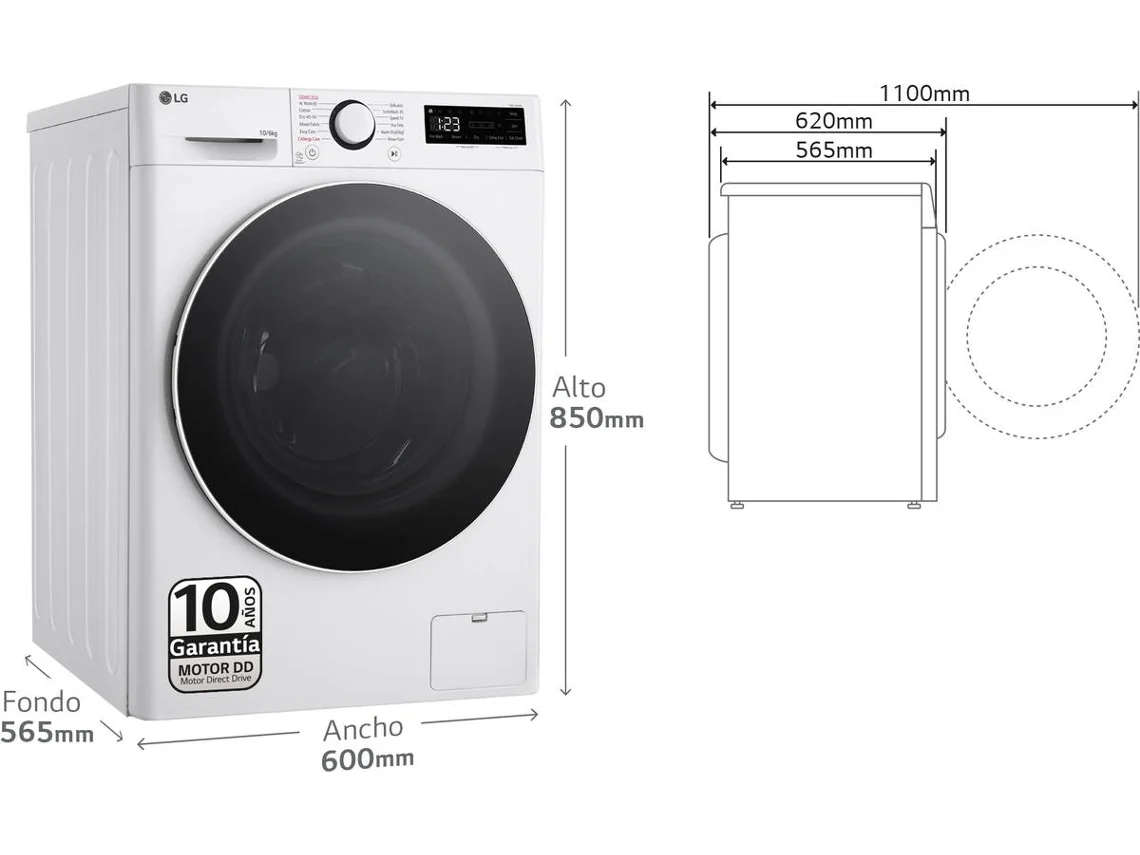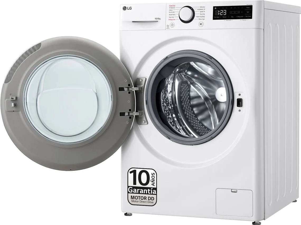 La LG F4DR6010A0W es una lavasecadora de alto rendimiento diseñada para ofrecer eficiencia, conectividad inteligente y un cuidado excepcional de las prendas. Con una capacidad de 10 kg para lavado y 6 kg para secado, este modelo es perfecto para familias que buscan un electrodoméstico práctico, potente y silencioso.