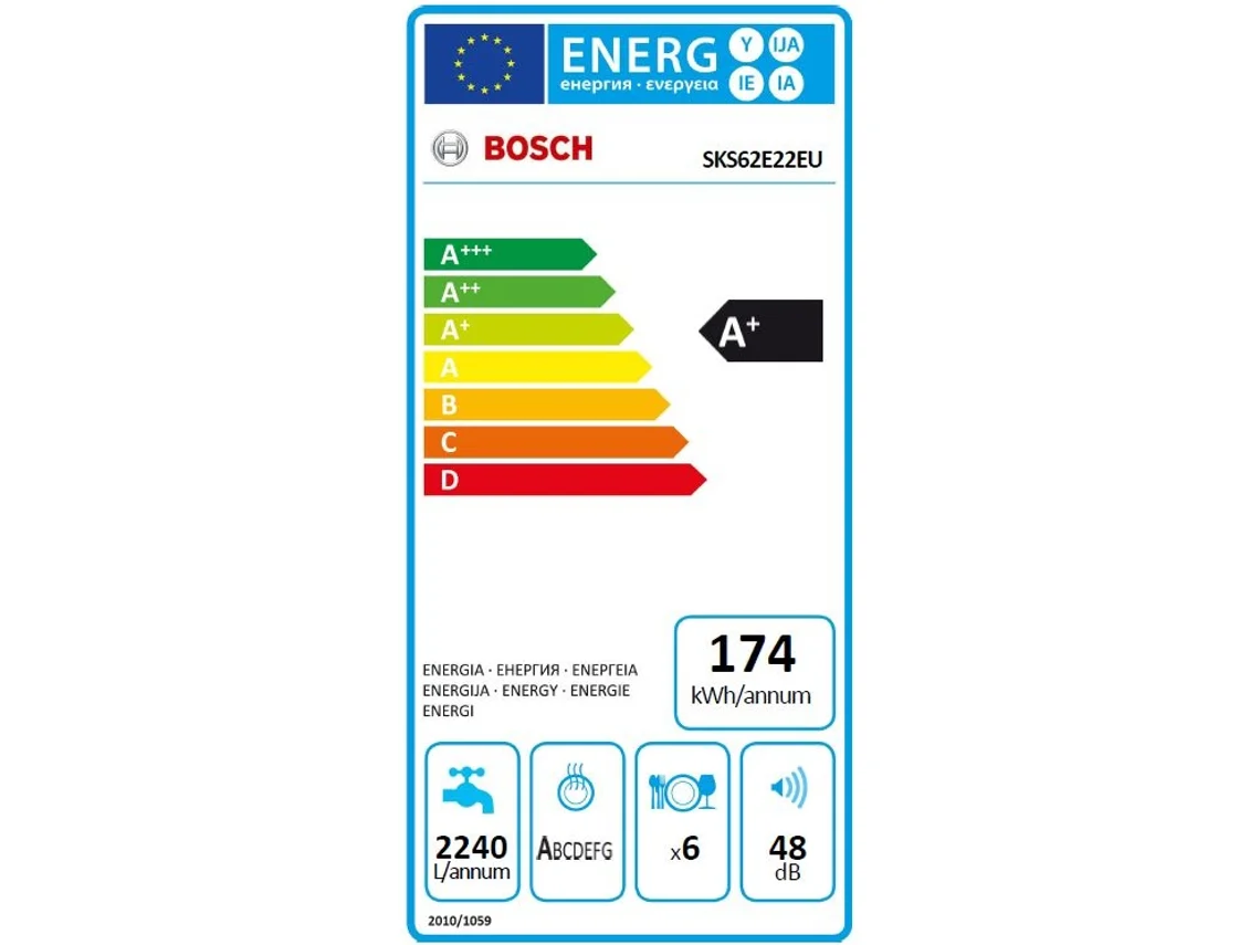 Lavavajillas BOSCH SKS62E22EU Blanco (6 cubiertos – 55.1 cm – Blanco)
