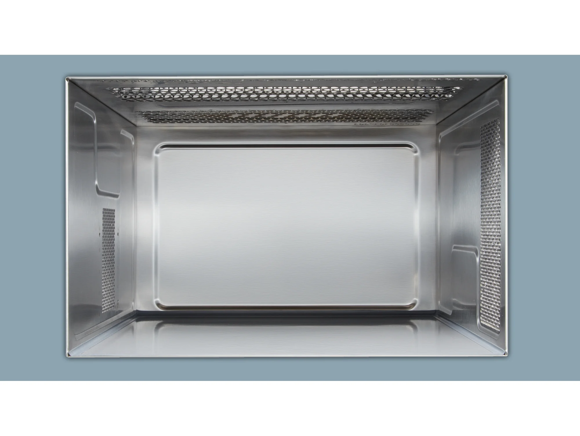 El microondas integrable sin marco Siemens BF634RGS1 tiene 38 cm de alto y te proporciona una máxima rapidez en la descongelación y en el calentamiento y preparación de los platos.