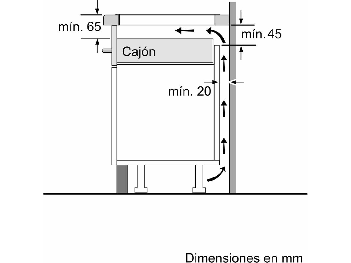 Espacio para encastre: 5.1 x 56 x 49 cm.